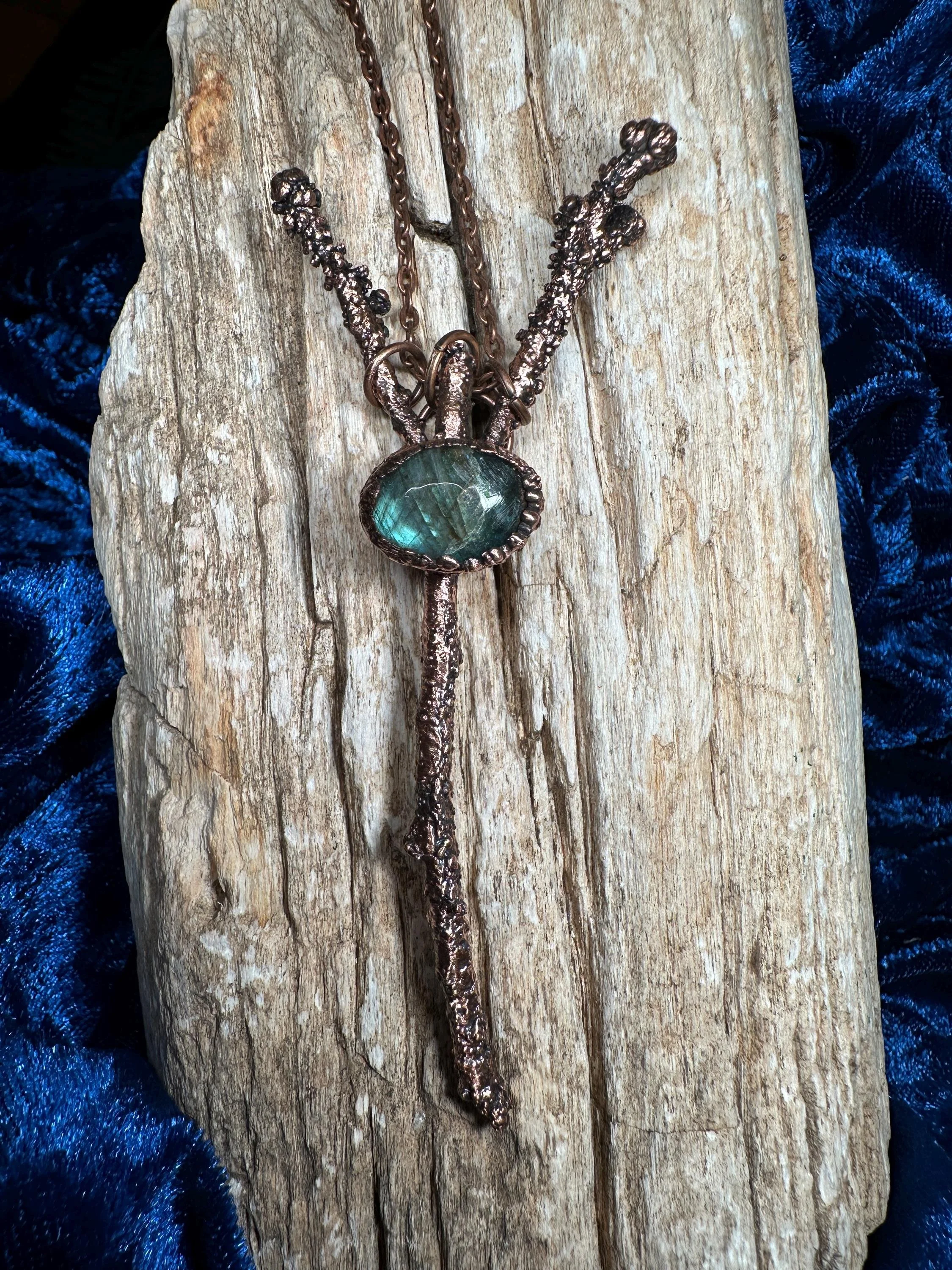 Algiz Rune Pendant – Electroformed Sticks with Labradorite Stone, Protection Symbol