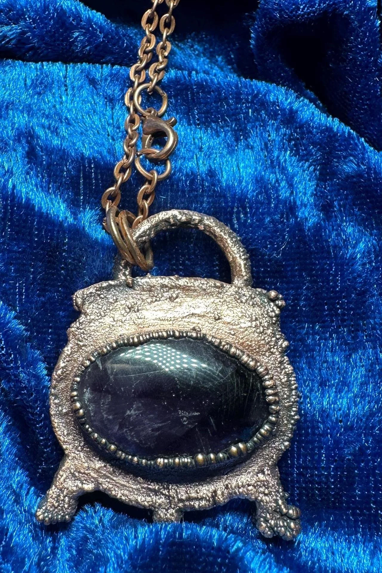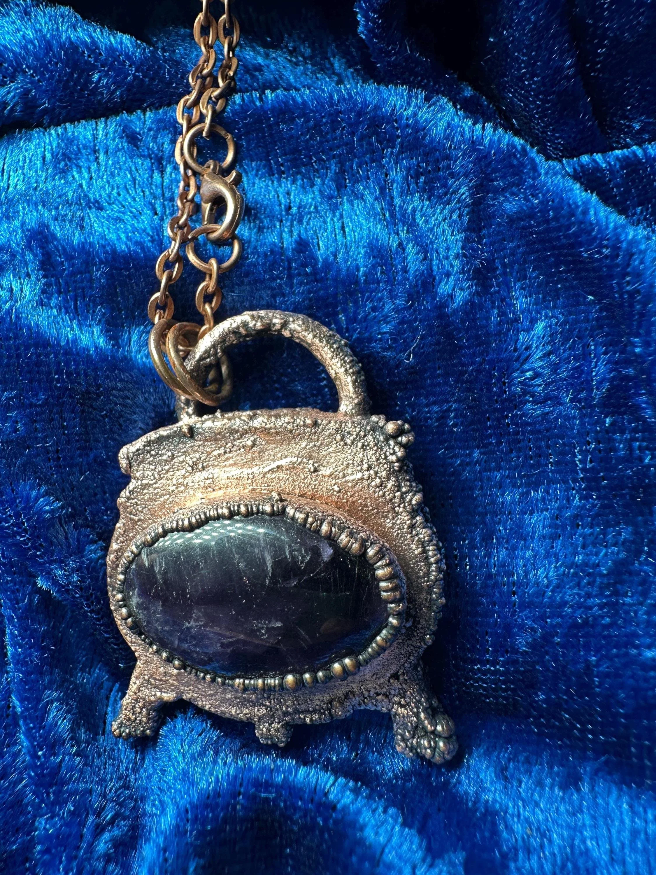 ðŠķ **Details:** - Electroformed Cauldron with Amethyst cabochon - Pendant size: 1.5" long x 1.1" wide - Includes an 18" copper chain - Handmade and one of a kind