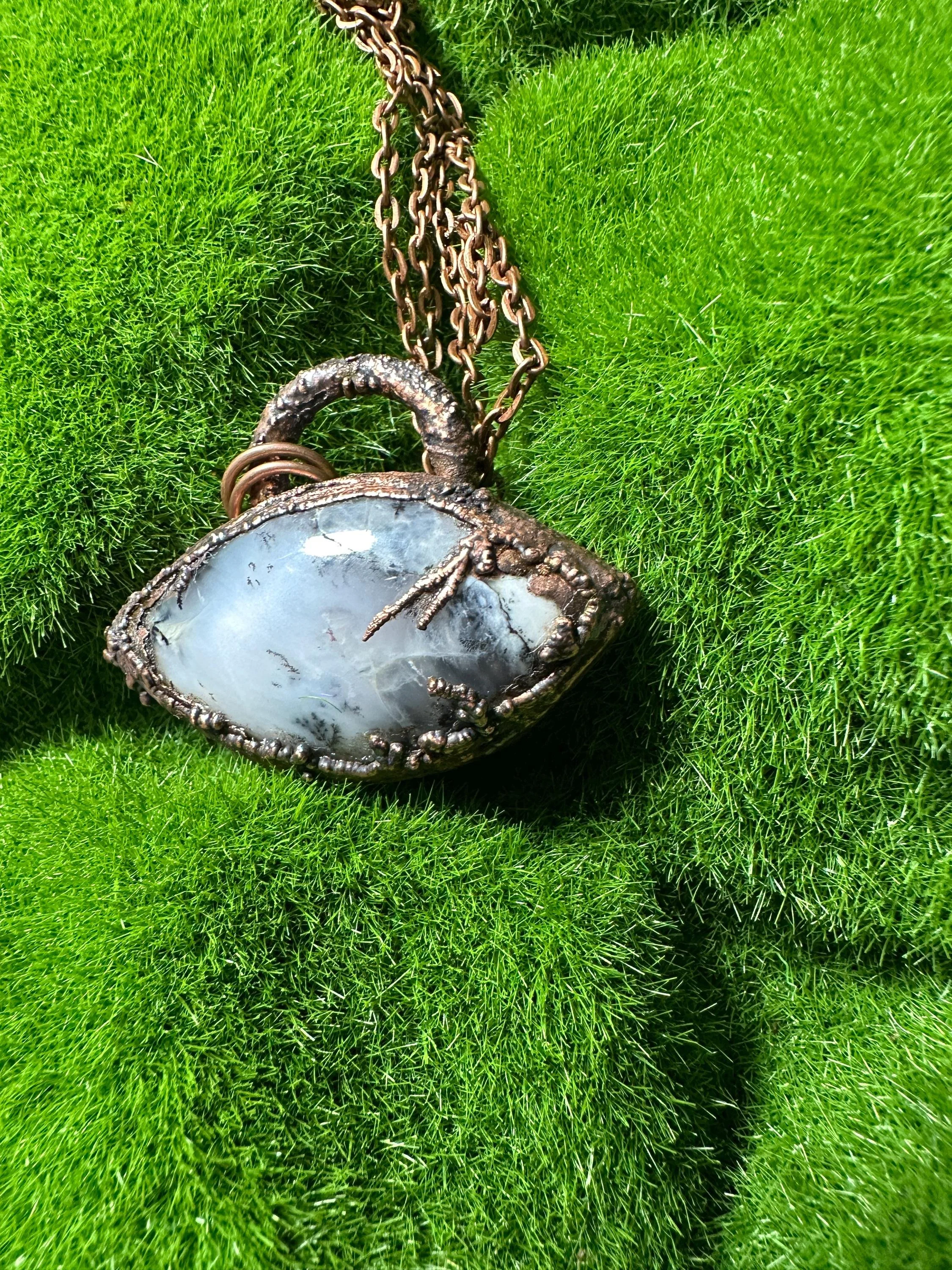 Dendritic Opal Eye Pendant Necklace, Unique Electroformed Jewelry, Natural Stone Spiritual Amulet, Magical Gemstone Necklace