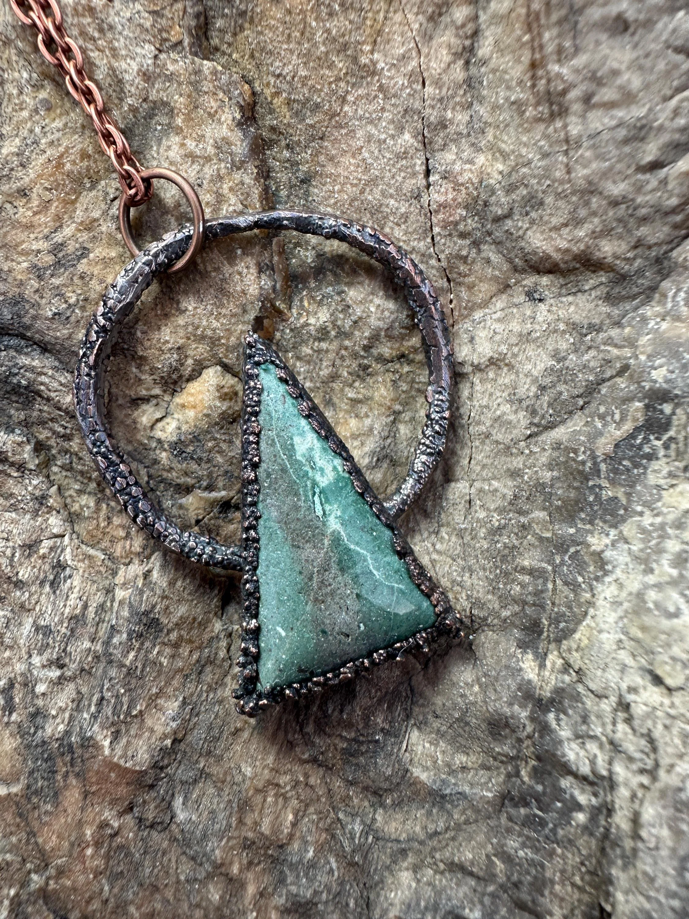 Electroformed Malachite Triangle Pendant | Rustic Green Triangle Malachite Necklace | Electroformed Copper Jewelry | Natural Stone Necklace