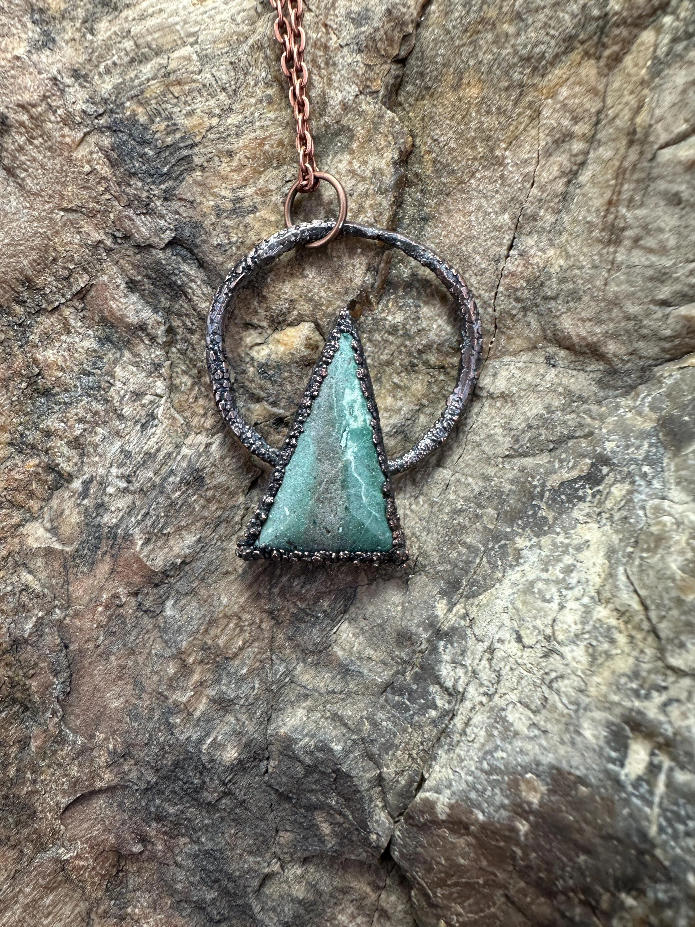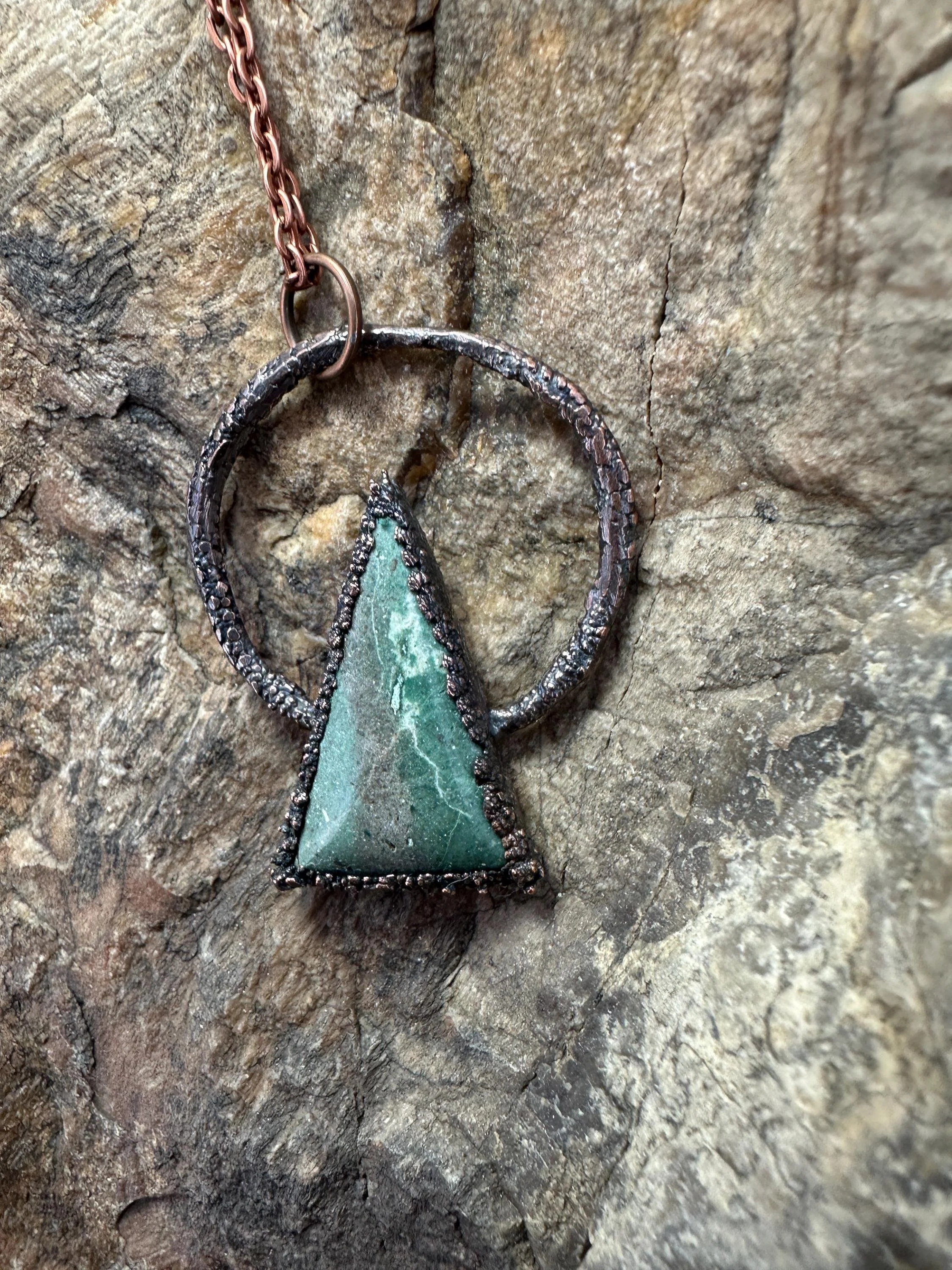 ðŠķ **Details:** - Triangular malachite stone with a completely unique pattern - Electroformed copper setting with an antiqued finish - Pendant size: 1.65" long x 1.33" wide - Includes an 18" copper chain - Handmade and one of a kind