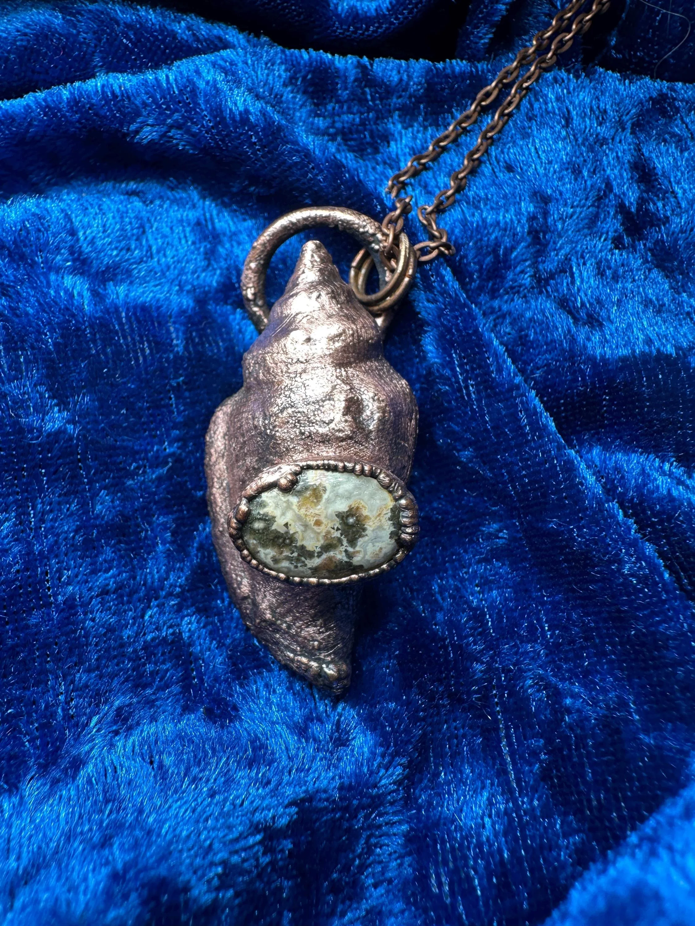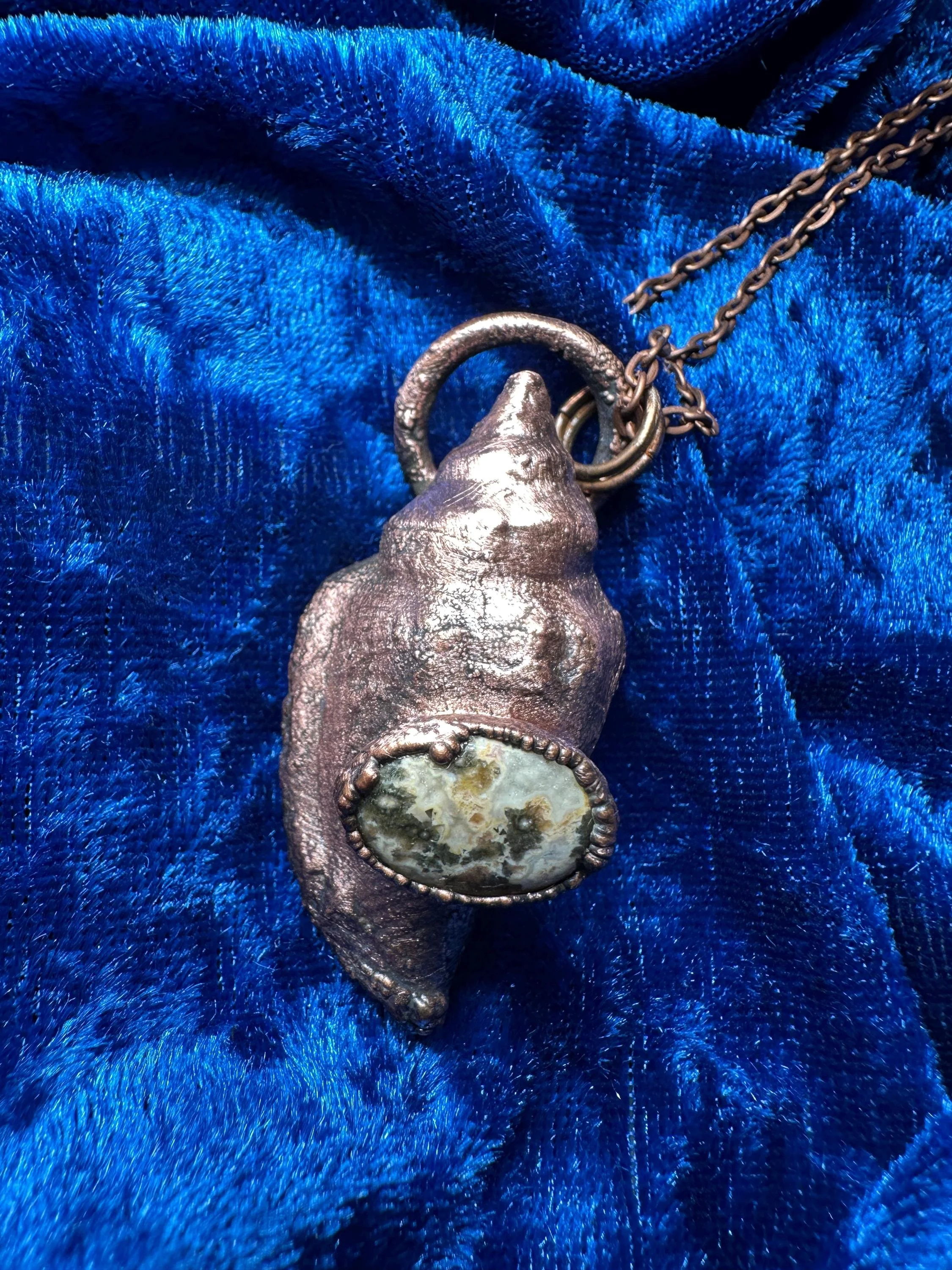 Electroformed Rainforest Jasper Shell Necklace | Boho Seashell Pendant | Ocean-Inspired Jewelry | Unique Handmade Gift Ideas