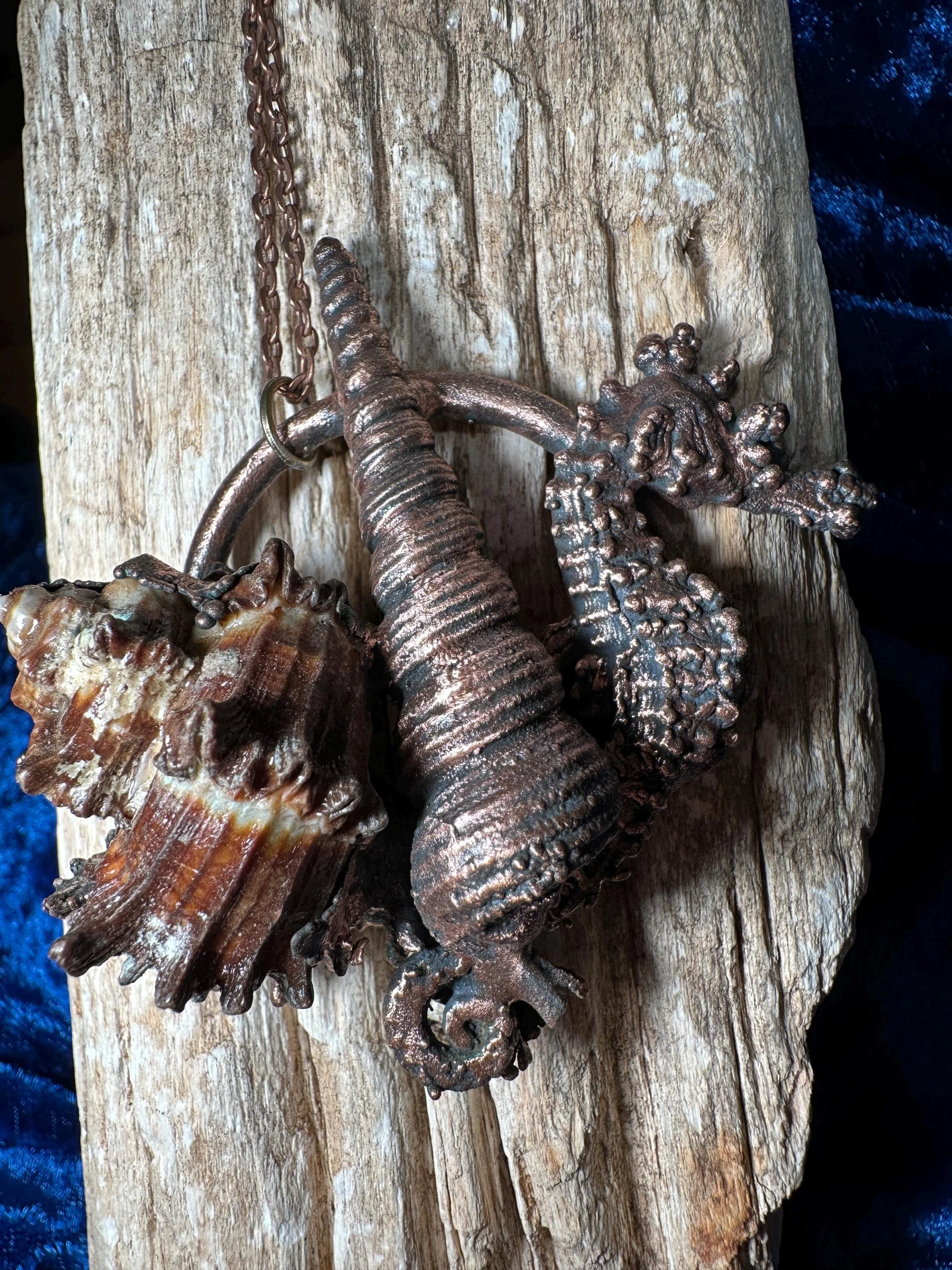 Electroformed Seahorse Shell Necklace | Real Shell Pendant | Ocean-Inspired Jewelry | Unique Handmade Gift Ideas