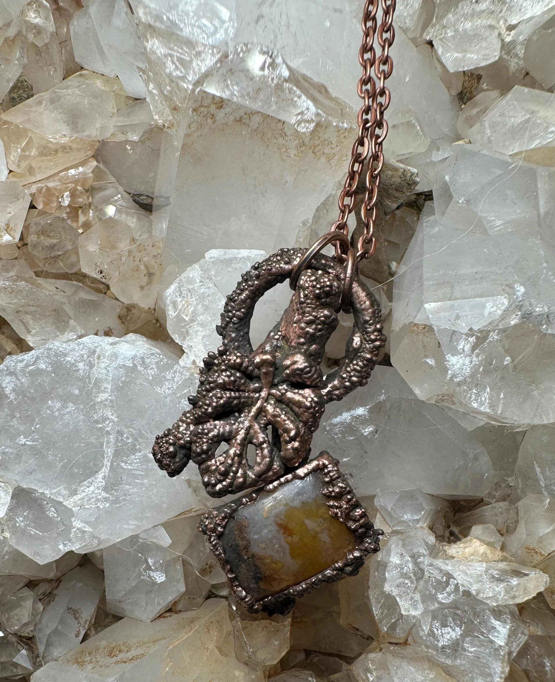 Electroformed Yellow Agate Pendant | Terlingua, Texas Agate | Botanical Gifts | Plant Lover Gift | Plant Jewelry