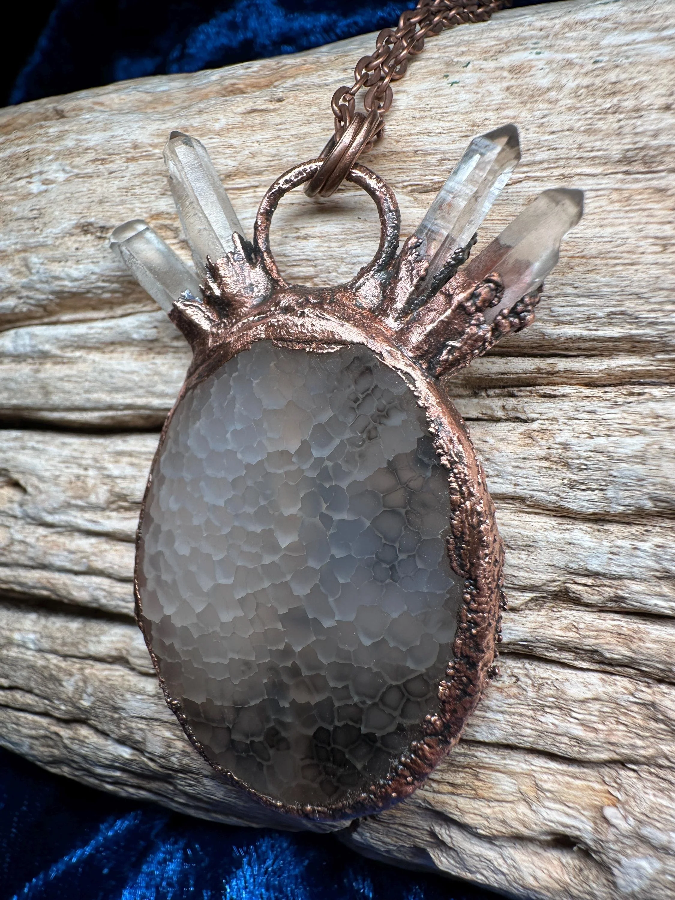 **Disclaimer:** The pendant is electroformed with copper and has been antiqued with patina. We seal with a clear sealant and will include instructions for retouching if the piece should need it. All of our pieces here at The Lost Alchemist Art Co are handmade and one of a kind. We strive to take accurate photos but please allow for minor color differences due to lighting or screen differences.