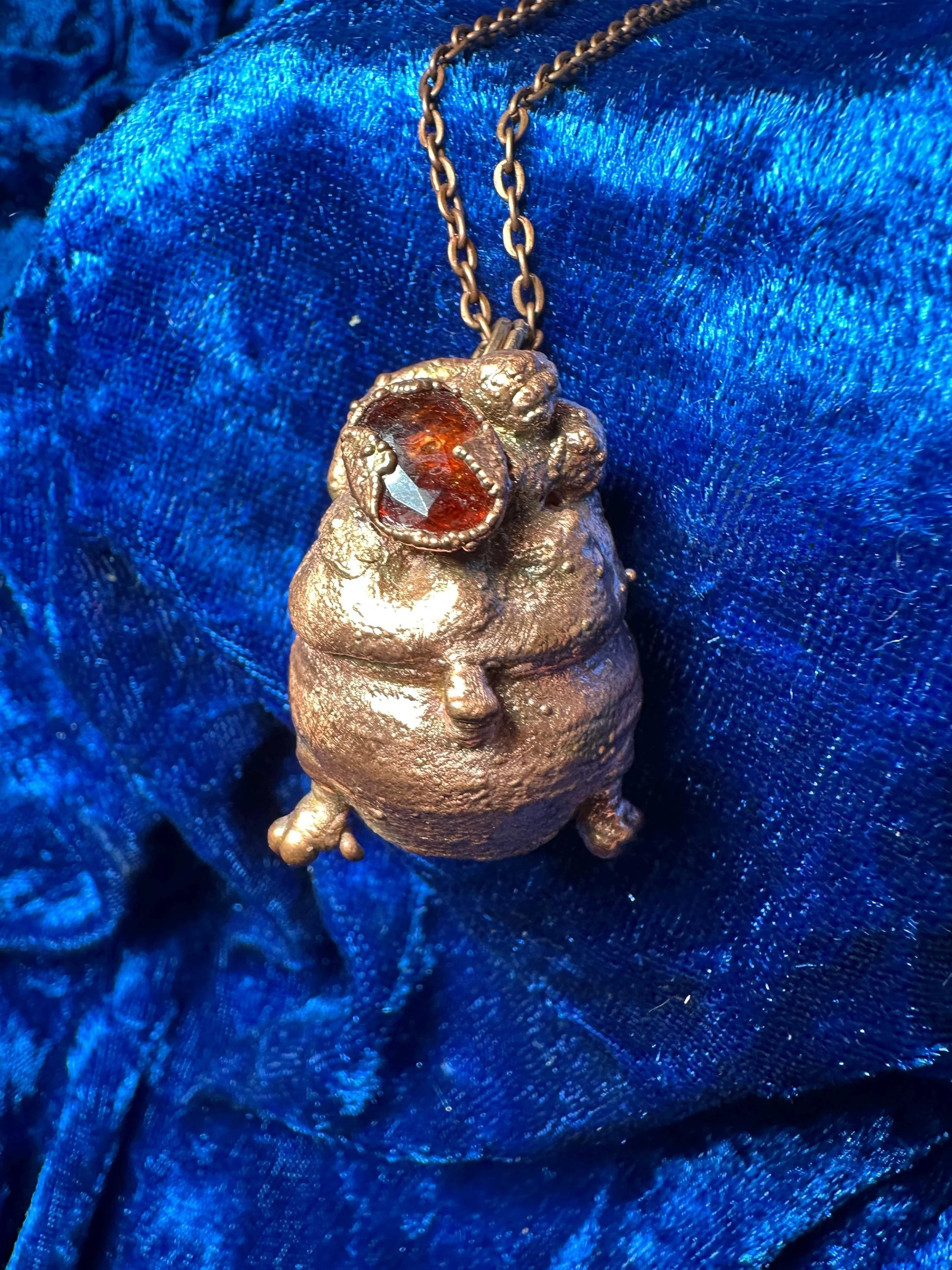 ðŠķ **Details:** - Electroformed Cauldron with hessonite garnet faceted stone - Orange oval faceted garnet - Pendant size: 1.25" long x 1" wide - Includes an 18" copper chain - Handmade and one of a kind