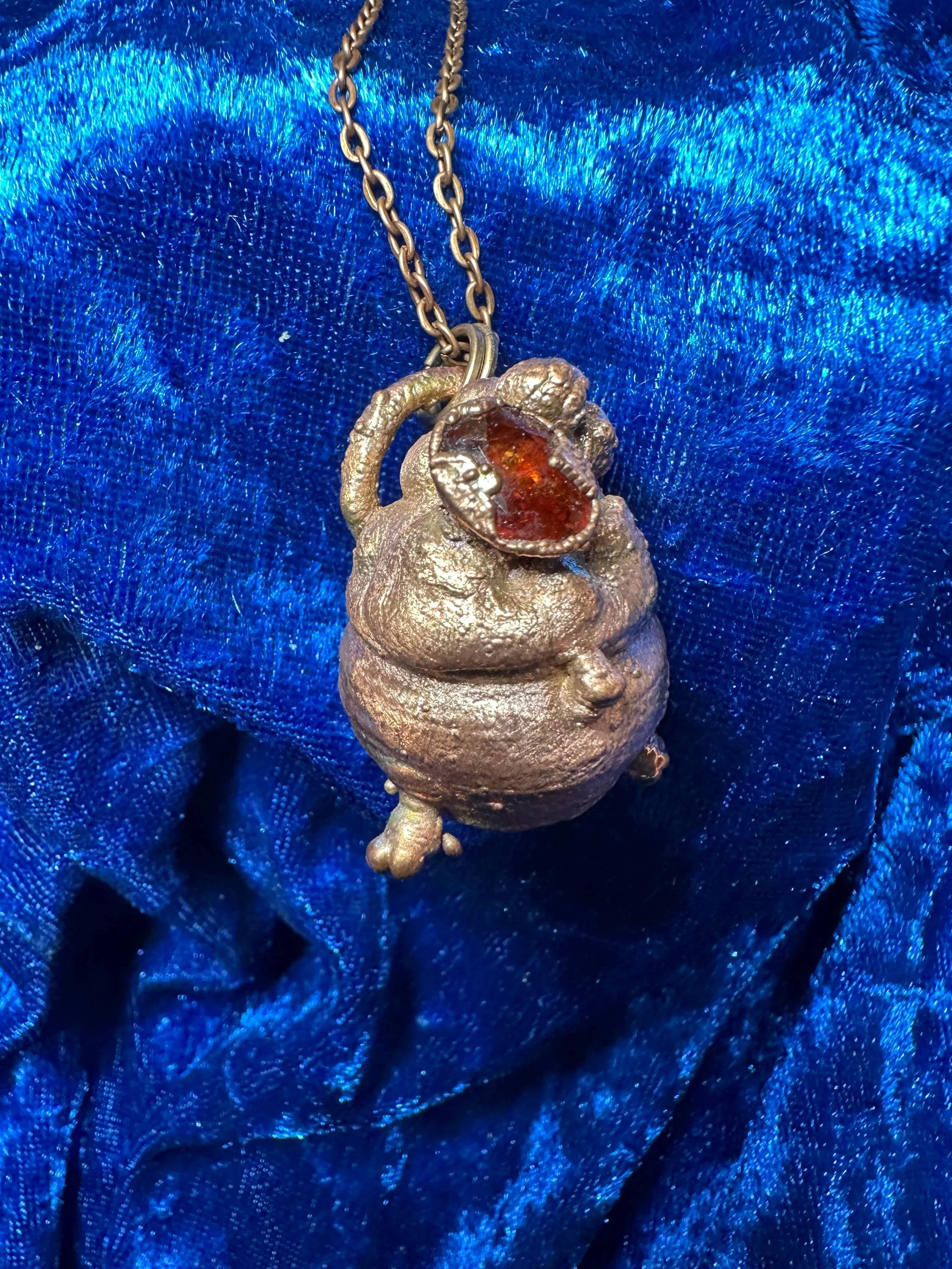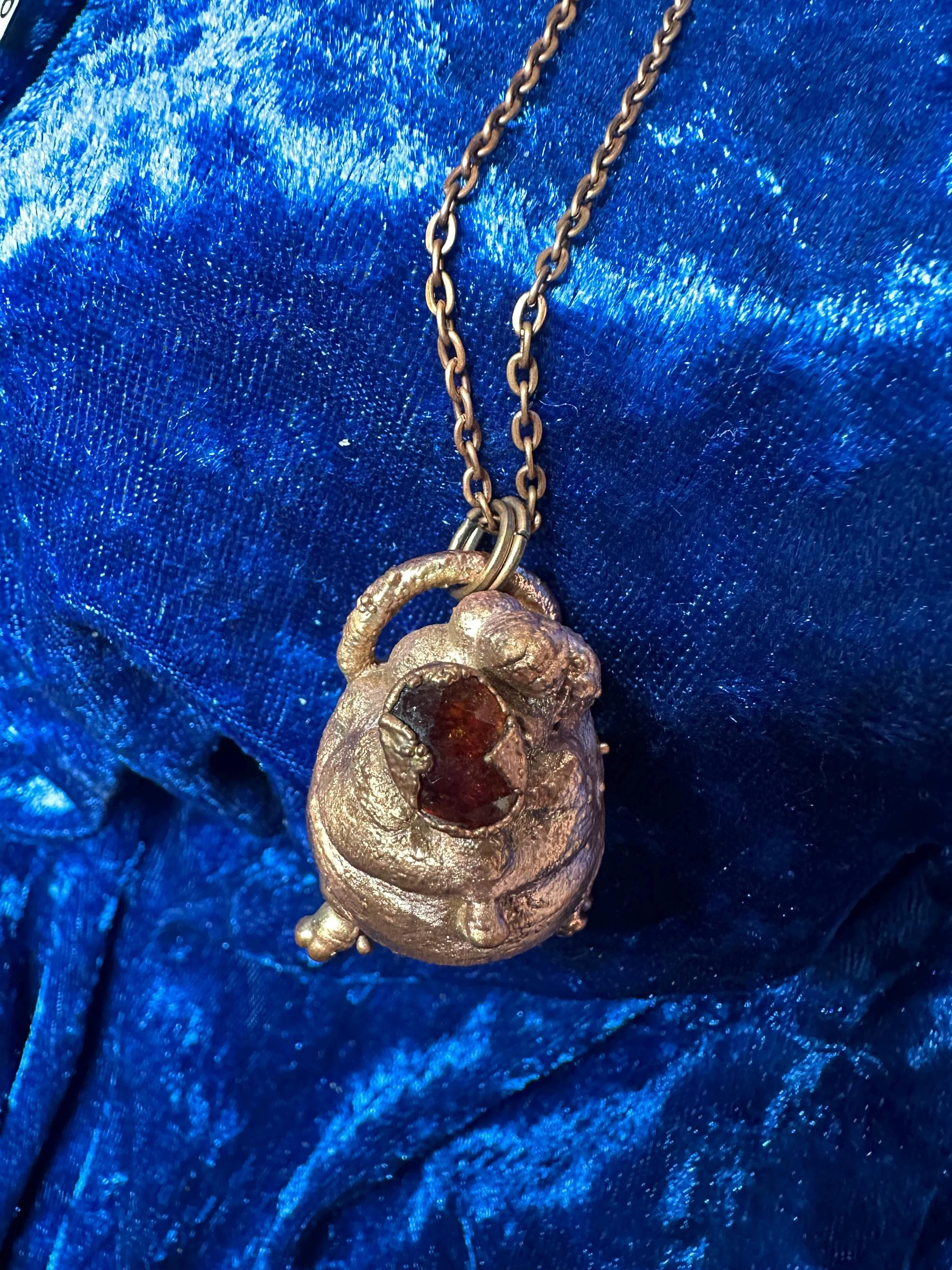 Hessonite Garnet Cauldron Pendant | Garnet Necklace | Orange Pendant | Witchy Gift | Halloween Gift