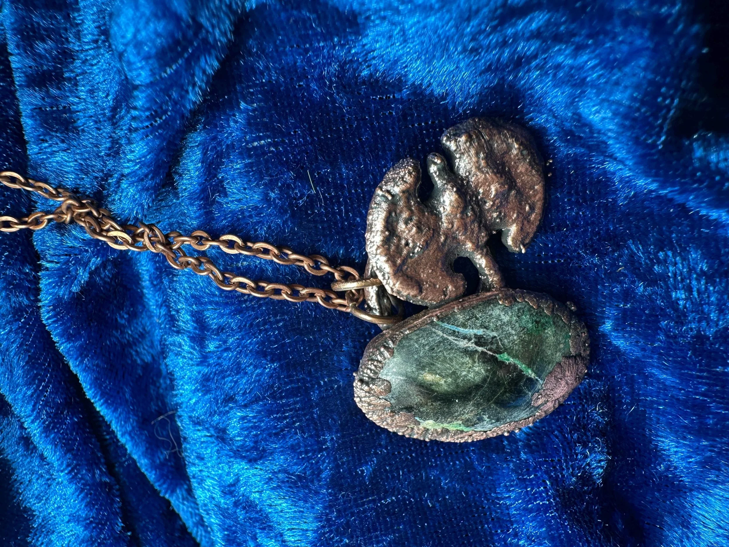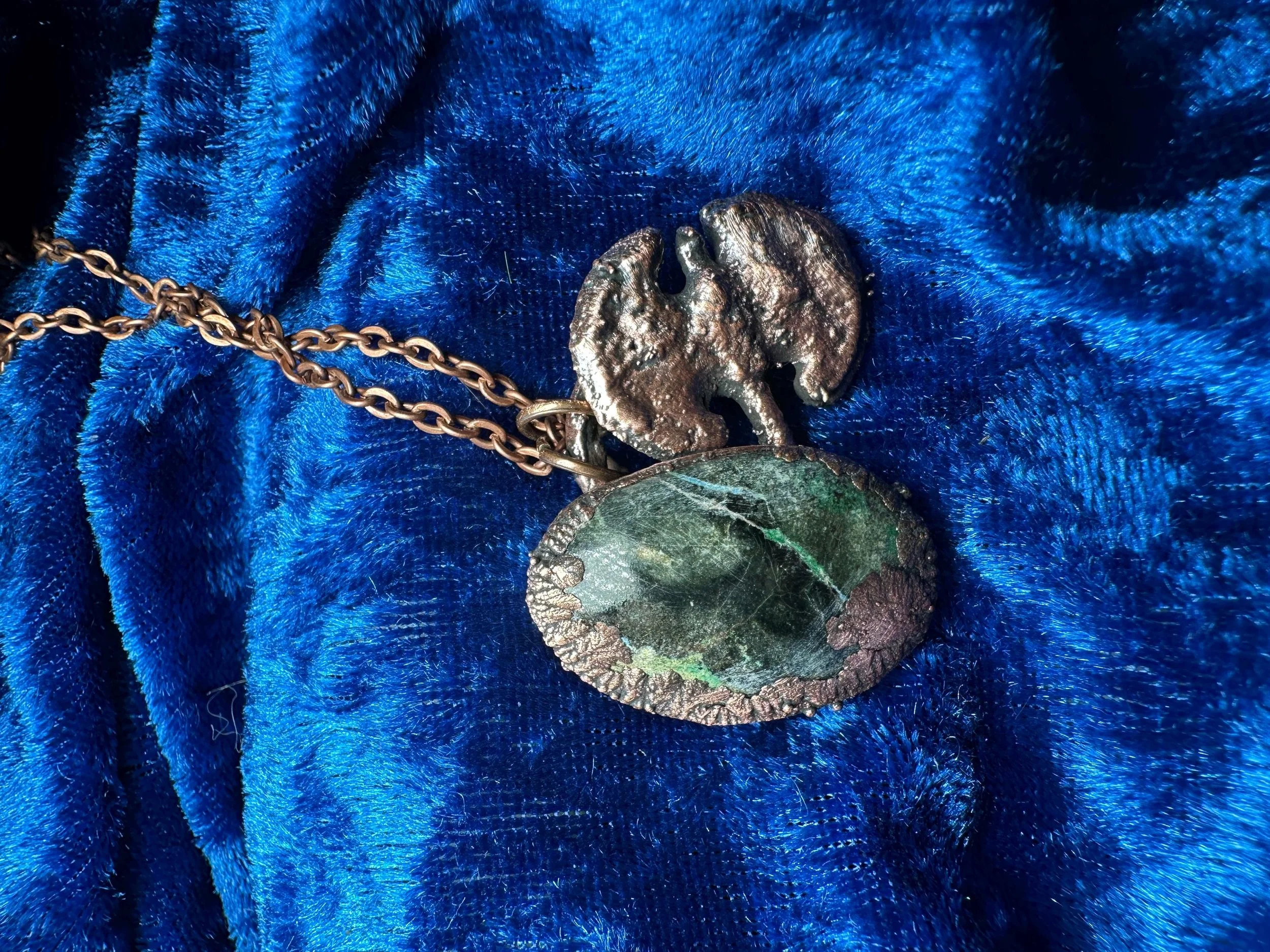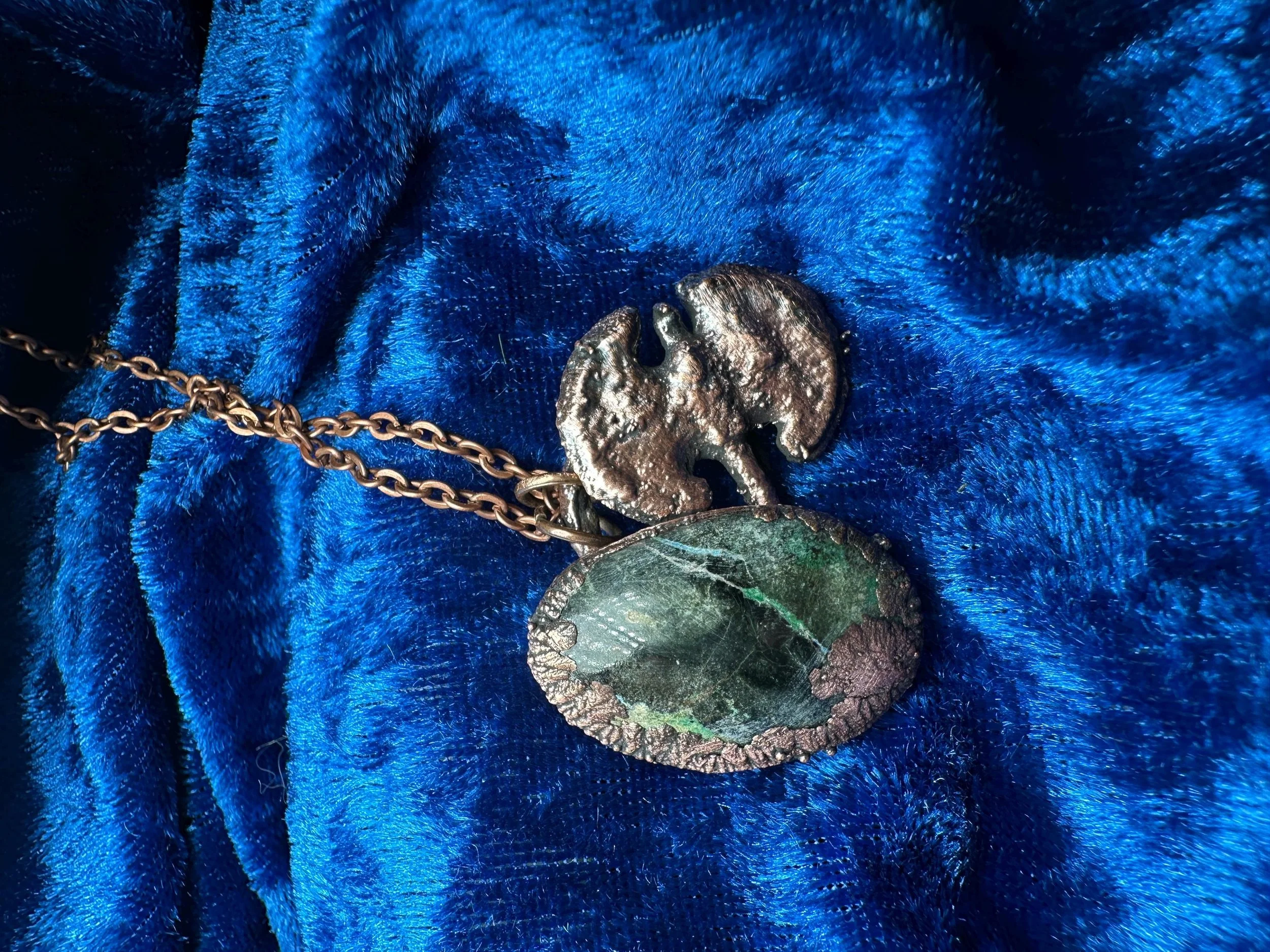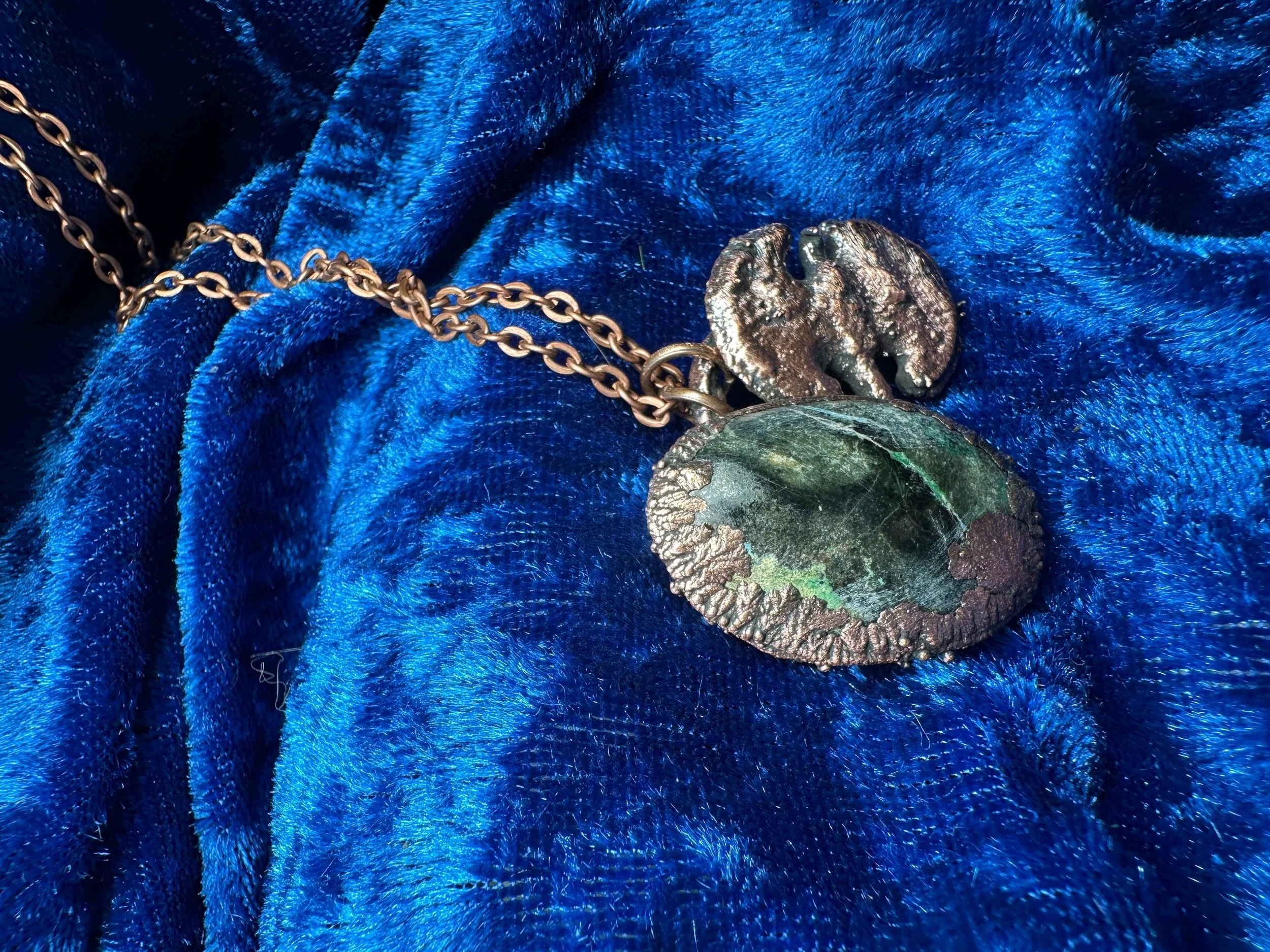 **Disclaimer:** The pendant is electroformed with copper and has been antiqued with patina. We seal with a clear sealant and will include instructions for retouching if the piece should need it. All of our pieces here at The Lost Alchemist Art Co are handmade and one of a kind. We strive to take accurate photos but please allow for minor color differences due to lighting or screen differences.