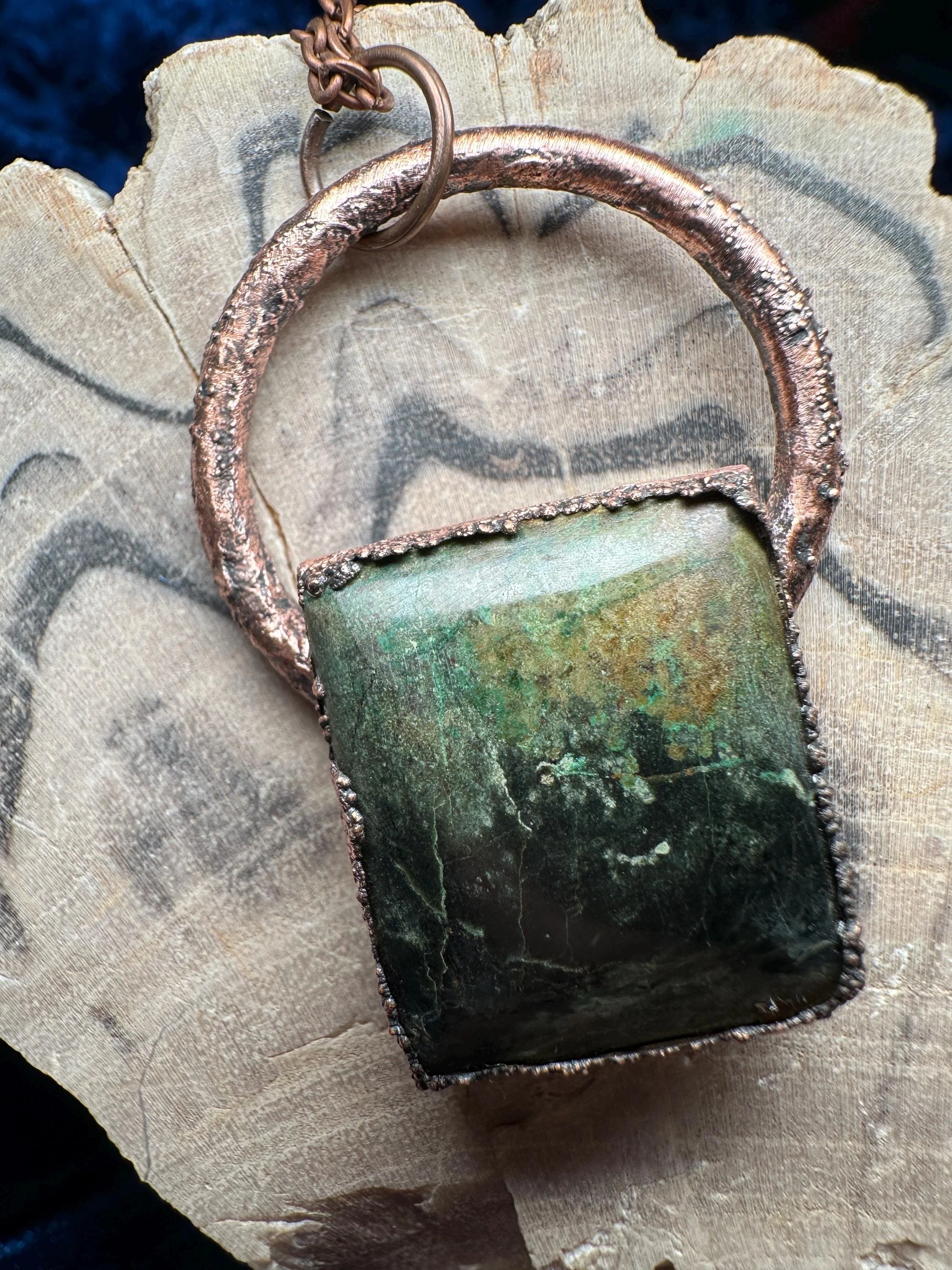 **Disclaimer:** The pendant is electroformed with copper and has been antiqued with patina. We seal with a clear sealant and will include instructions for retouching if the piece should need it. All of our pieces here at The Lost Alchemist Art Co are handmade and one of a kind. We strive to take accurate photos but please allow for minor color differences due to lighting or screen differences.