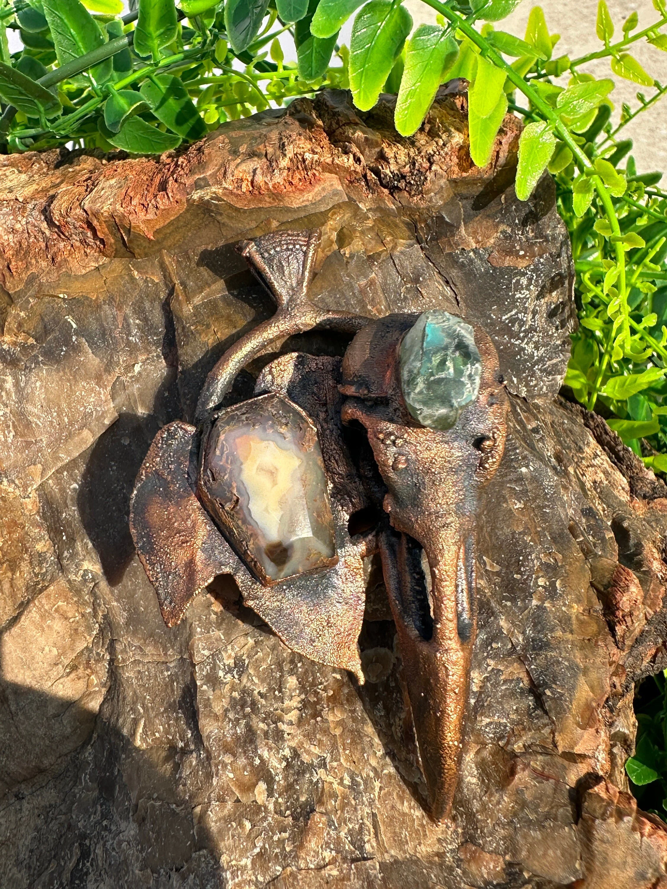 Embrace the mystique of nature and the elegance of gothic design with our Raven Skull Necklace. This unique, handcrafted necklace is an enchanting blend of artistry, symbolism, and nature-inspired beauty. The centerpiece of the necklace features a 3D printed raven skull electroformed in brass, showcasing intricate detailing that captures the allure of this mysterious bird.