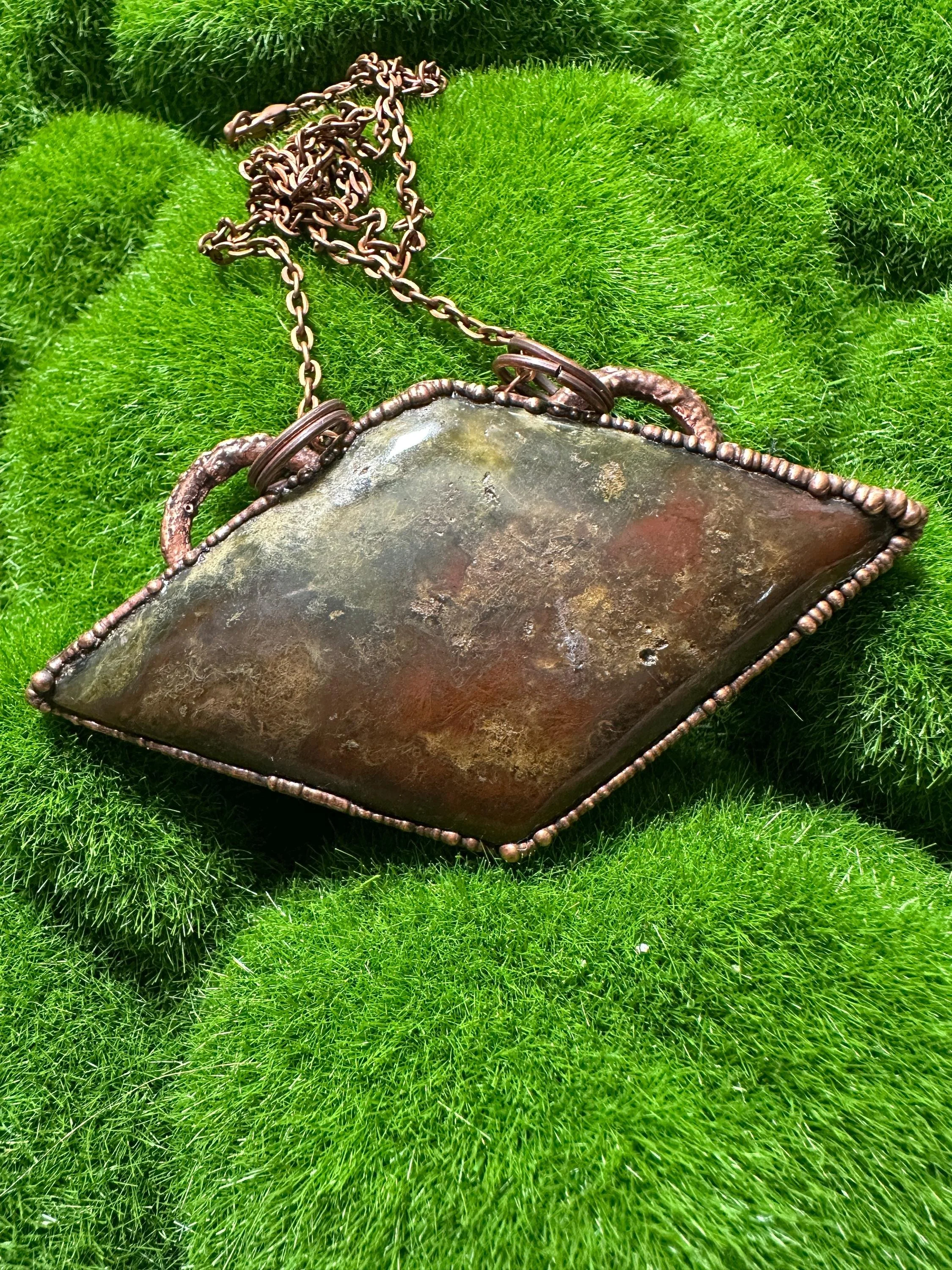 Red and Green Moss Agate Diamond Pendant - Texas Jewelry - Nature Inspired Jewelry - Texas Gift - Unique Gift - Agate Jewelry