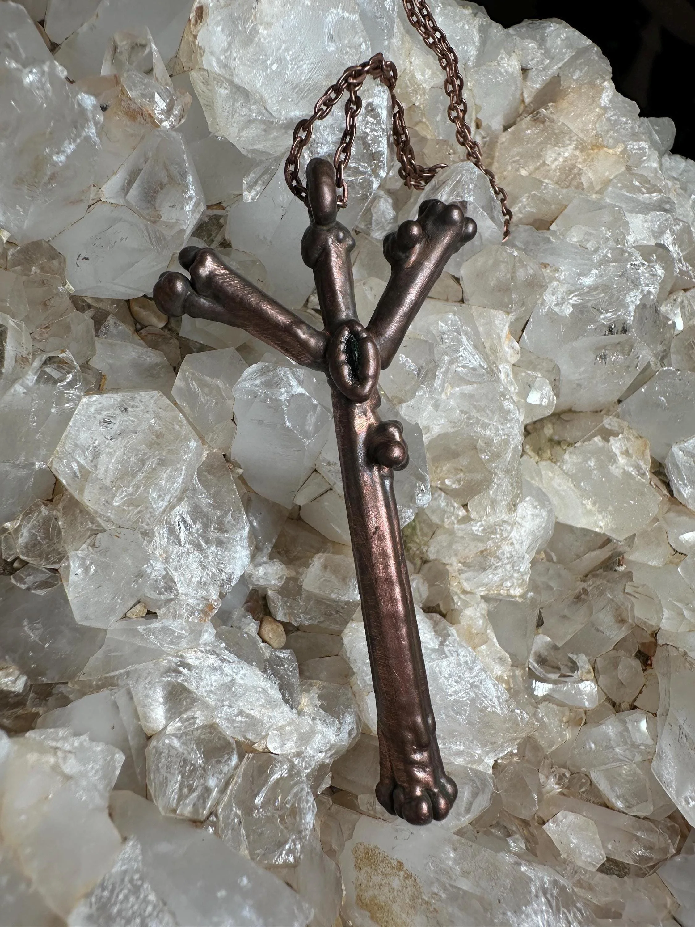 This one-of-a-kind pendant is shaped from real sticks, carefully arranged to form the Algiz rune—an ancient symbol of protection. Each twig is electroformed in copper, preserving its natural texture for a rugged, earthy look.