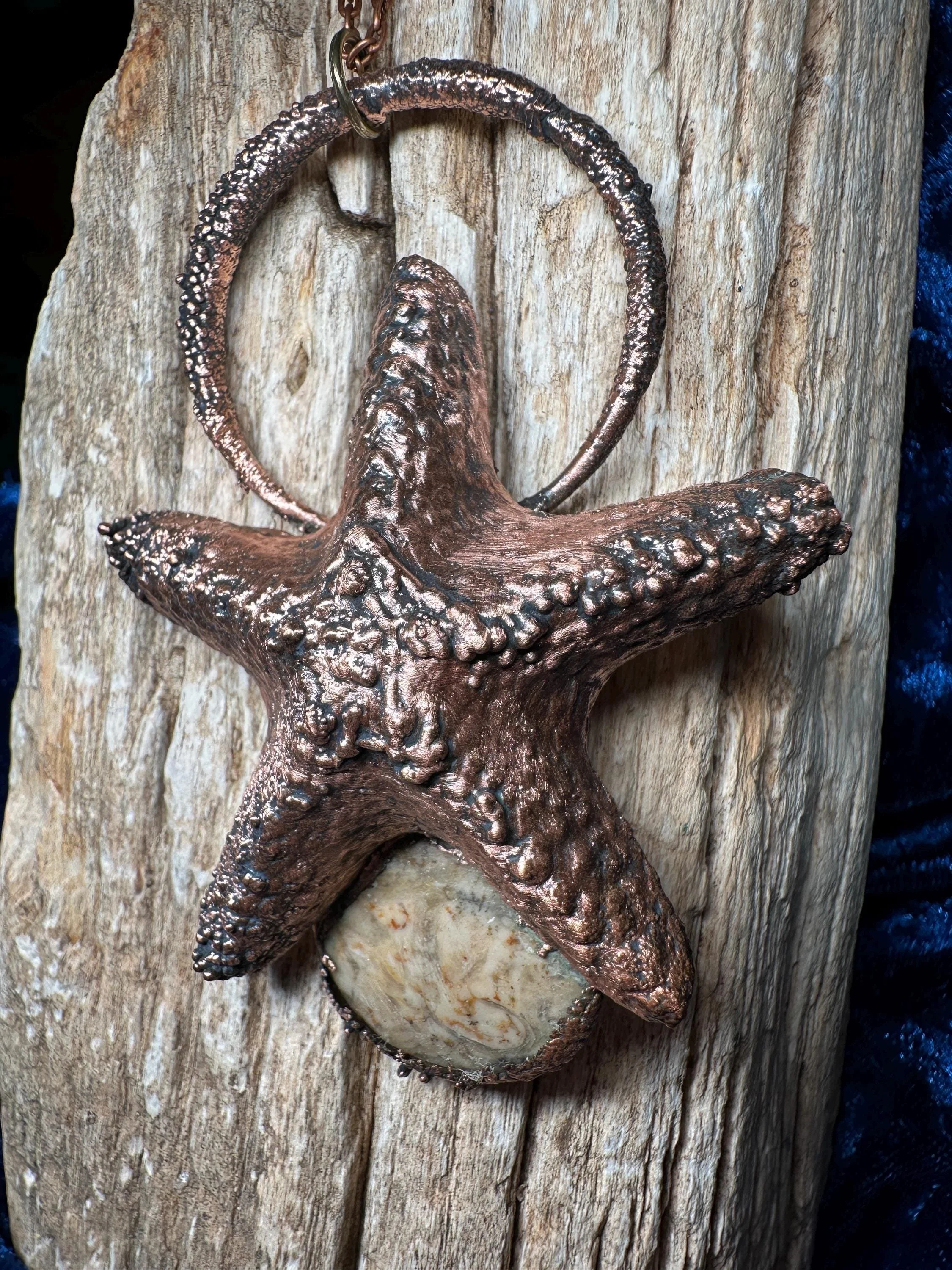 Electroformed Starfish Necklace With Fossilized Ocean Bed Stone | Handmade Copper Pendant | Beach Jewelry | Perfect Gift