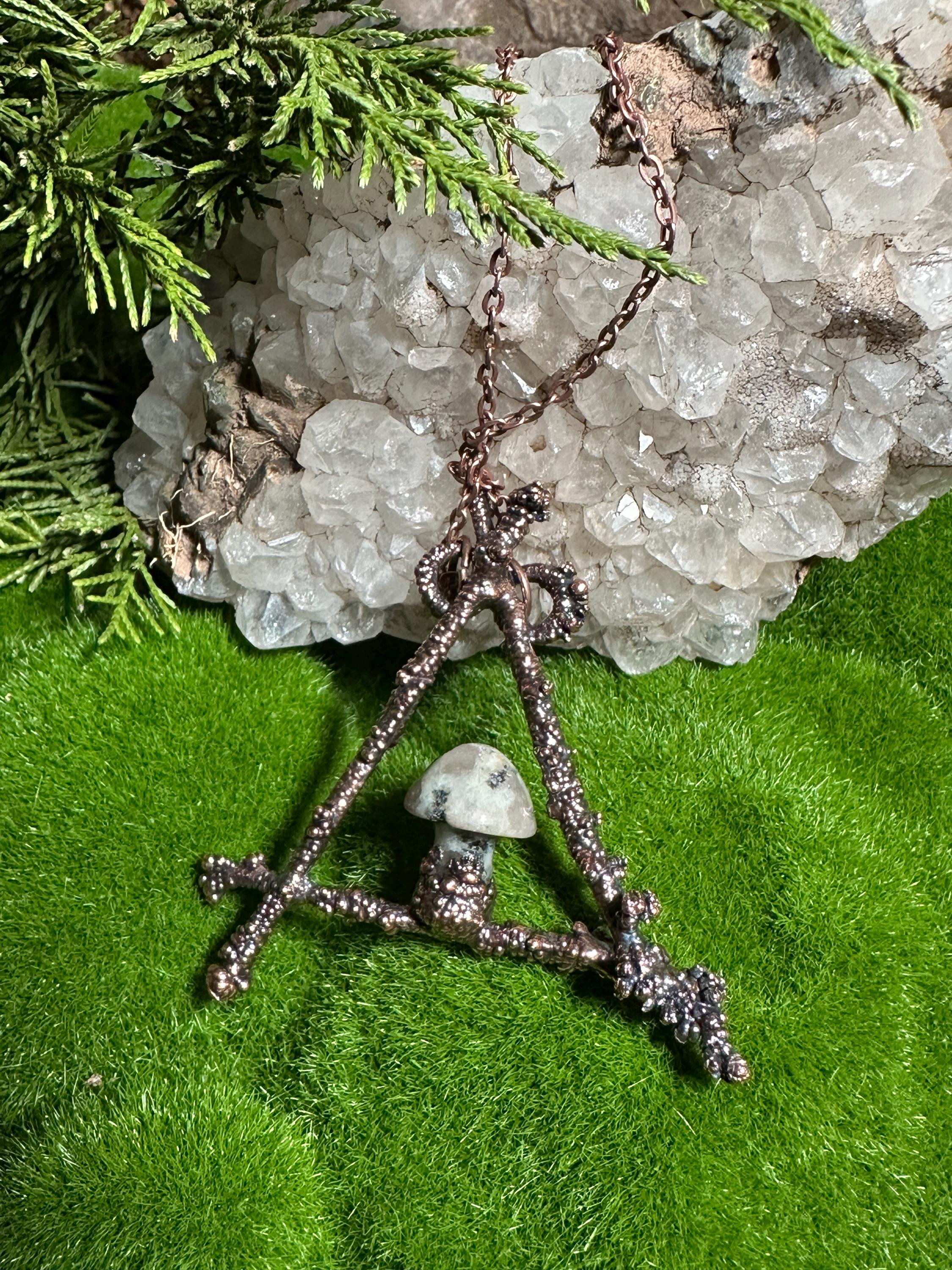 **Enchanting Pine Triangle Necklace with Labradorite Mushroom**