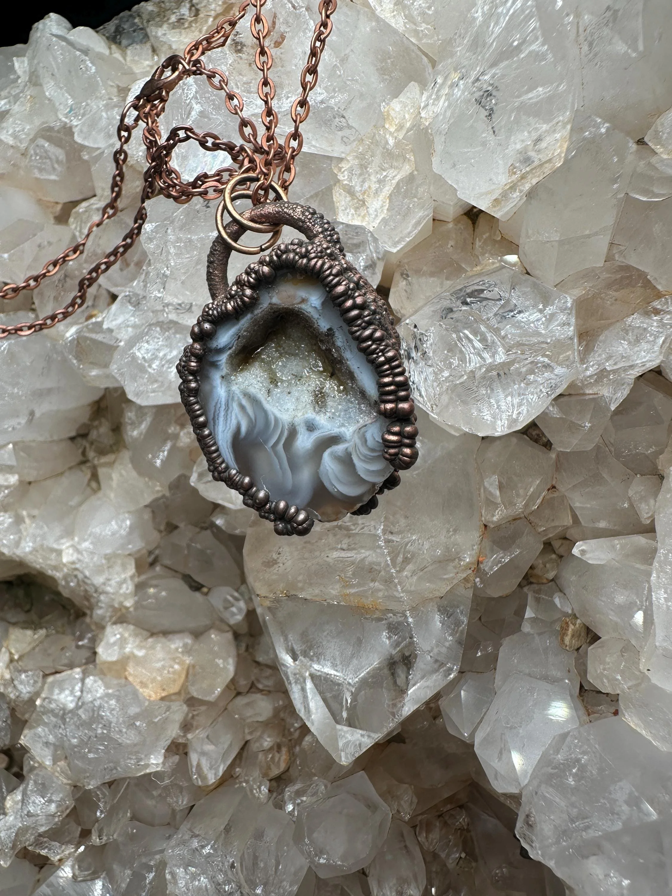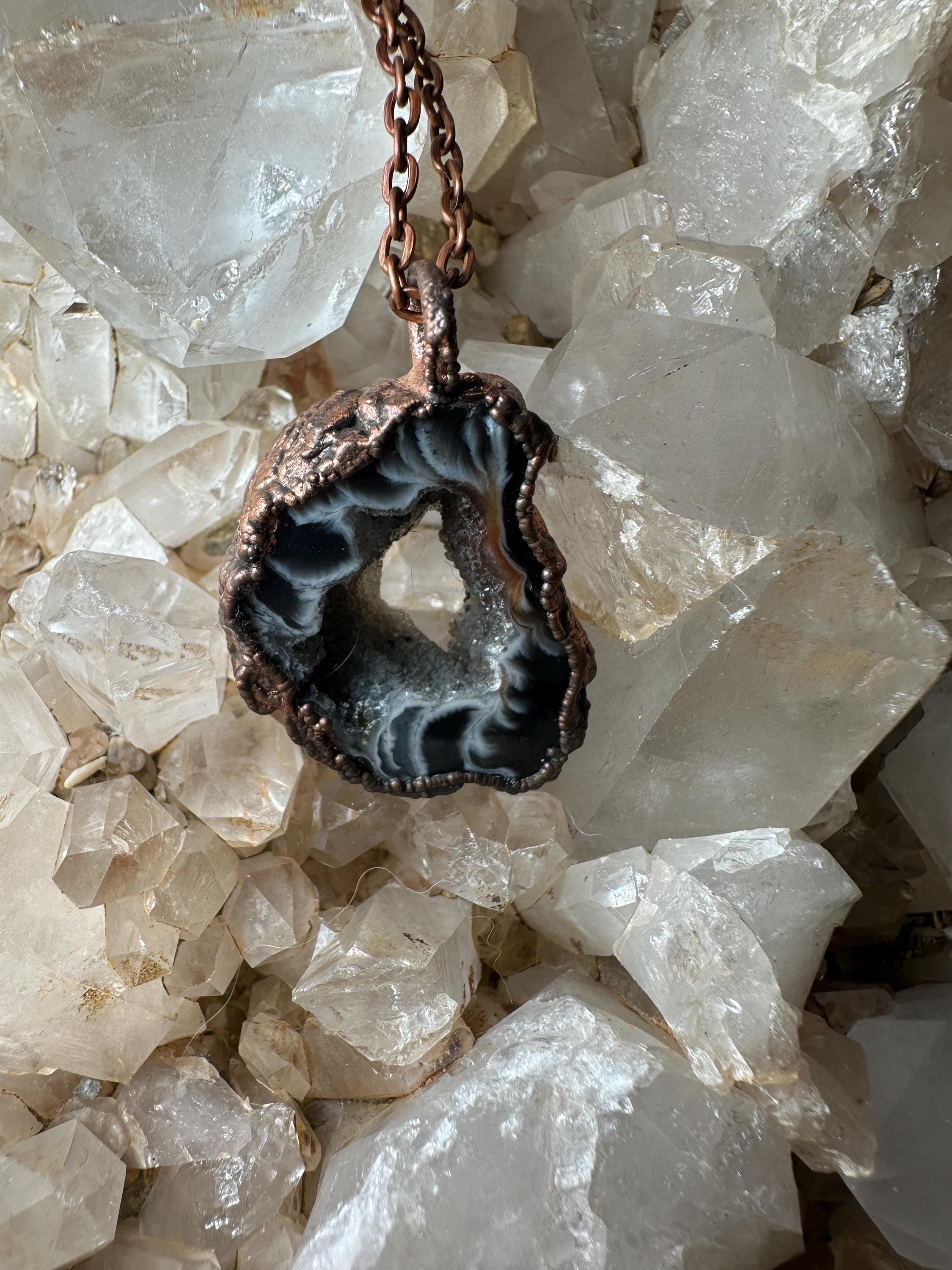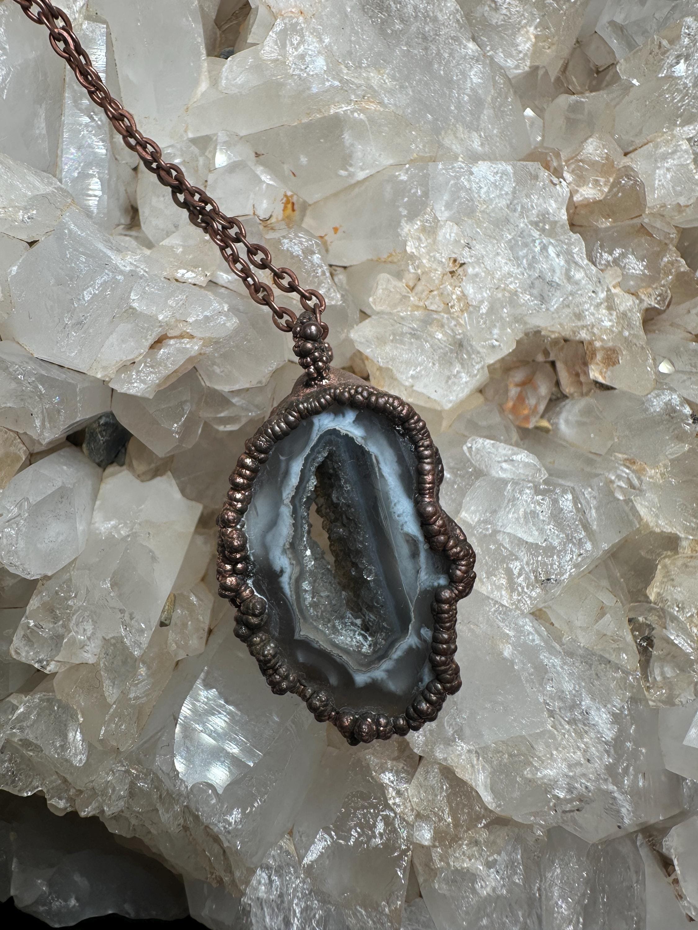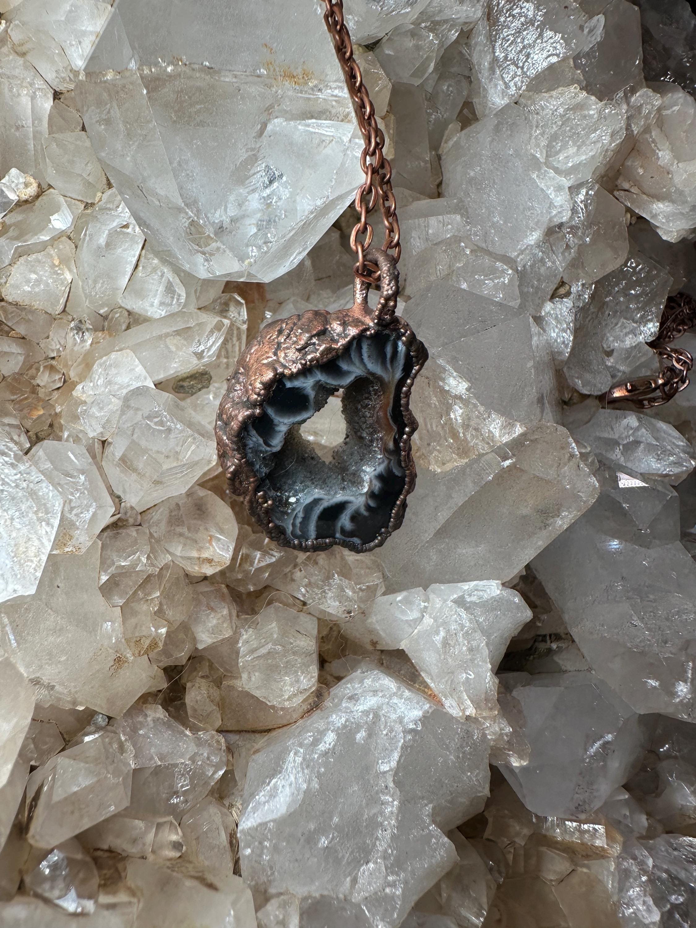 Simple but Sweet Categories: Select a Category Large pendants <2” Texas Crystals/ Rocks Simple but Sweet Runes/Sigils/Pagan Darker Theme Pieces Real Plants and Nature Forest Creations Ocean collection Small pendants >2” The Moon and Stars Simple but Sweet Amethyst Tower Pendant Necklace | Crystal Tower Necklace | Unique Jewelry | Electroformed Jewelry | Purple Jewelry Gift $50.00 Sold Out Sold Out Added! Oval Amethyst Sage Agate Pendant | Natural Stone Jewelry | Healing Crystal Necklace | Purple Necklace $65.00 Sold Out Sold Out Added! Malachite Azurite Triangle Pendant | Electroformed Copper Necklace | Blue Green Necklace | Unusual Jewelry $45.00 Add To Cart Added! Handmade Opalite Arrowhead Pendant: Copper Edged Gemstone Necklace $50.00 Add To Cart Added! Electroformed Copper Amethyst Tower Pendant Necklace - Purple Crystal Jewelry $50.00 Add To Cart Added! Larimar Square Pendant – Copper Electroformed with Ball Chain Border | Larimar Necklace | Blue Necklace | Western Gifts | Western Jewelry $60.00 Add To Cart Added! Spooky Season Ghost Pendant | Electroformed Ghost | Halloween Gift | Spooky Gift $23.00 Add To Cart Added! Rectangular Green Moss Agate Pendant | Terlingua Texas Stone in Copper | Green Moss Agate Necklace | Slim Copper Moss Agate Pendant $50.00 Add To Cart Added! Electroformed Copper Amethyst Tower Pendant Necklace - Purple Crystal Jewelry $50.00 Add To Cart Added! Black Agate Oval Pendant Necklace | Rustic Electroformed Copper Jewelry | Natural Stone Statement Necklace | Handmade Texas Agate Gift $60.00 Add To Cart Added! Electroformed Lepidolite & Serpentine Oval Pendant | Diagonal Split Gemstone | Handmade Necklace $65.00 Add To Cart Added! Electroformed Arkansas Quartz Pendant | Dainty Crystal Crown Necklace | Metaphysical Gift | Arkansas Quartz Jewelry | Crystal Jewelry $50.00 Add To Cart Added! Electroformed Geode Slice Pendant | Geode Gifts | Natural Crystal Jewelry $60.00 Geode 1 Geode 2 Geode 3 Add To Cart Added! Electroformed Geode Slice Pendant | Geode Gifts | Natural Crystal Jewelry $50.00 Geode 1 Geode 2 Geode 3 Add To Cart Added! Electroformed Geode Half Pendant | Geode Gifts | Natural Crystal Jewelry $60.00 Add To Cart Added!