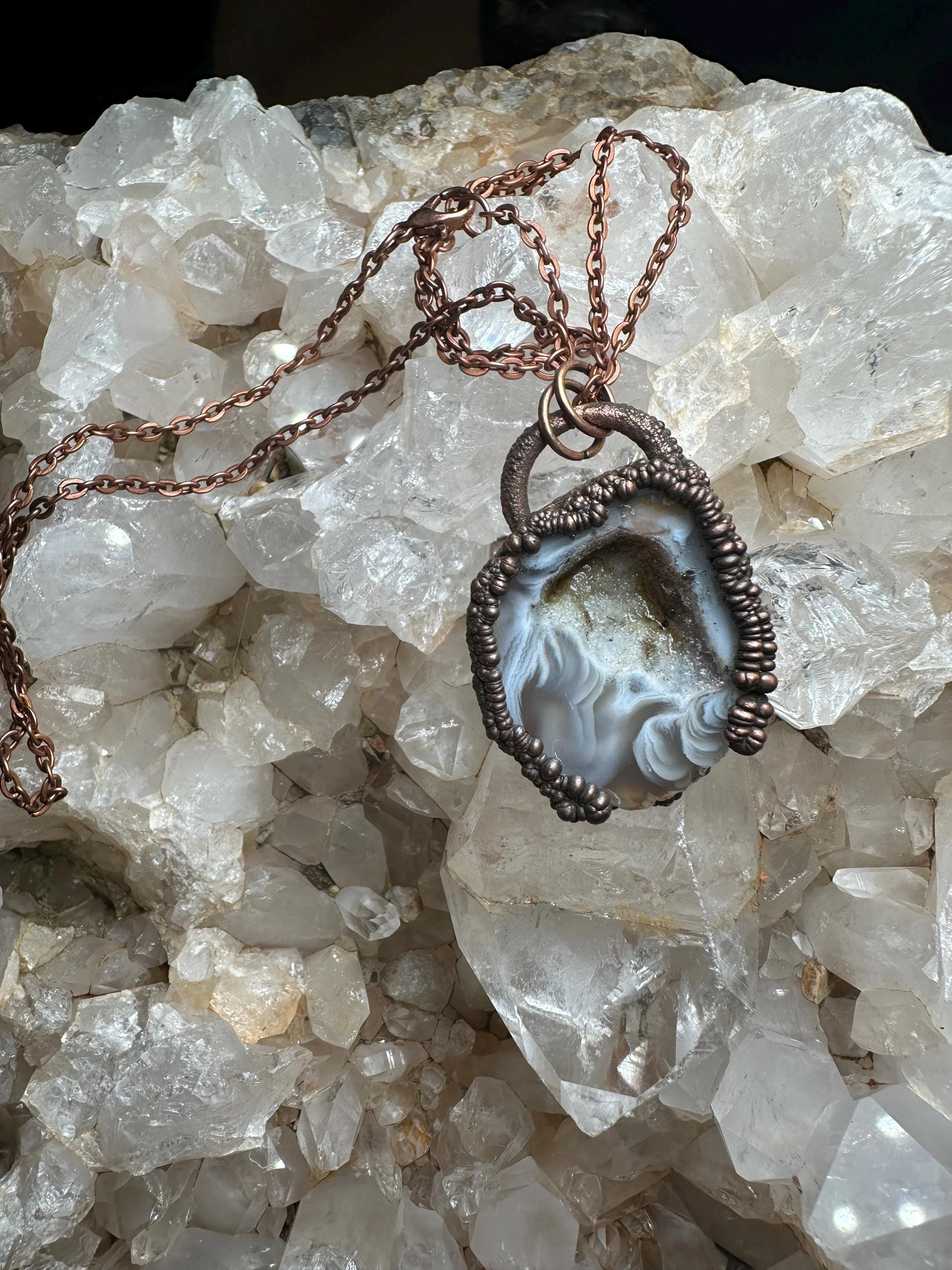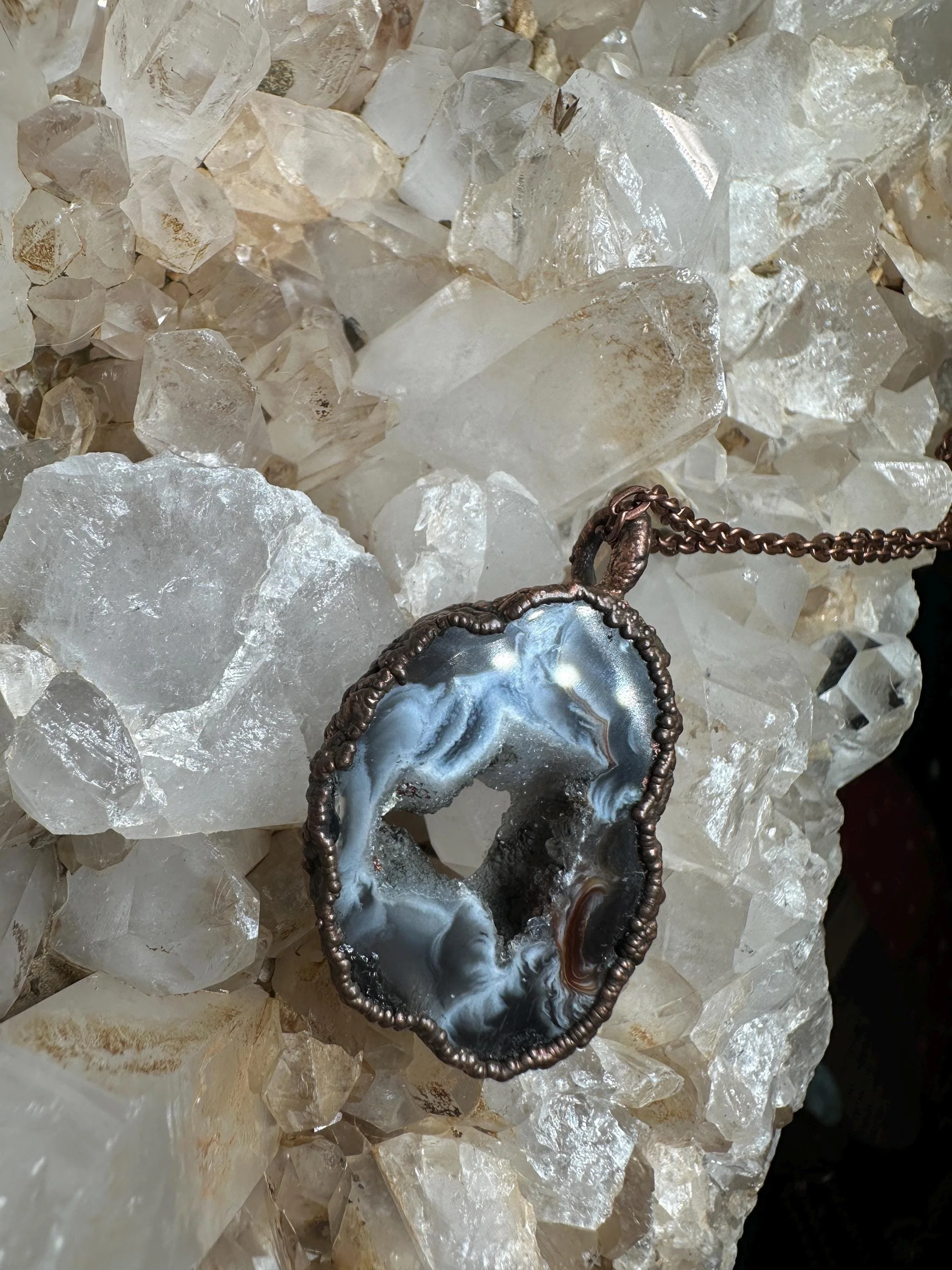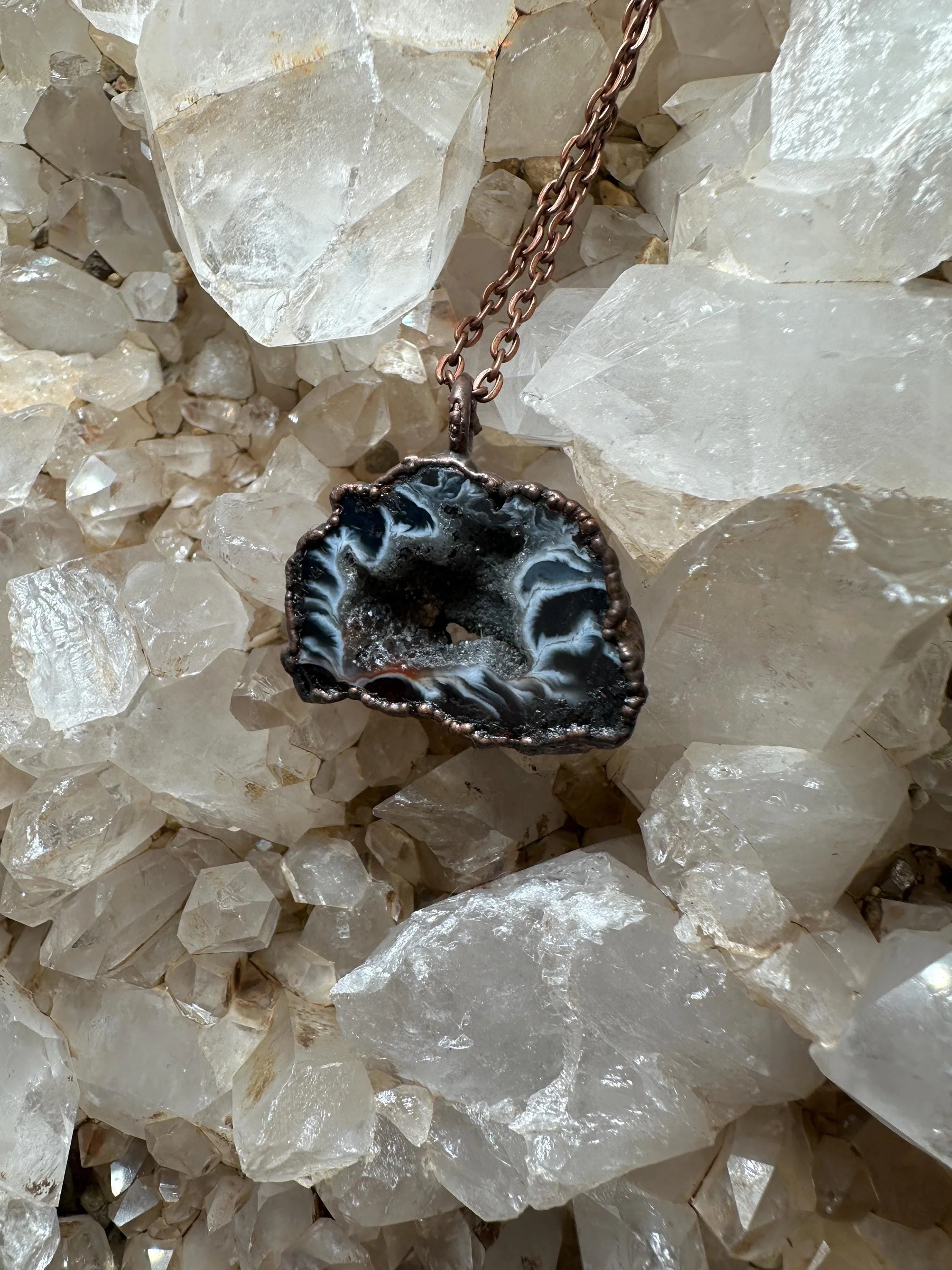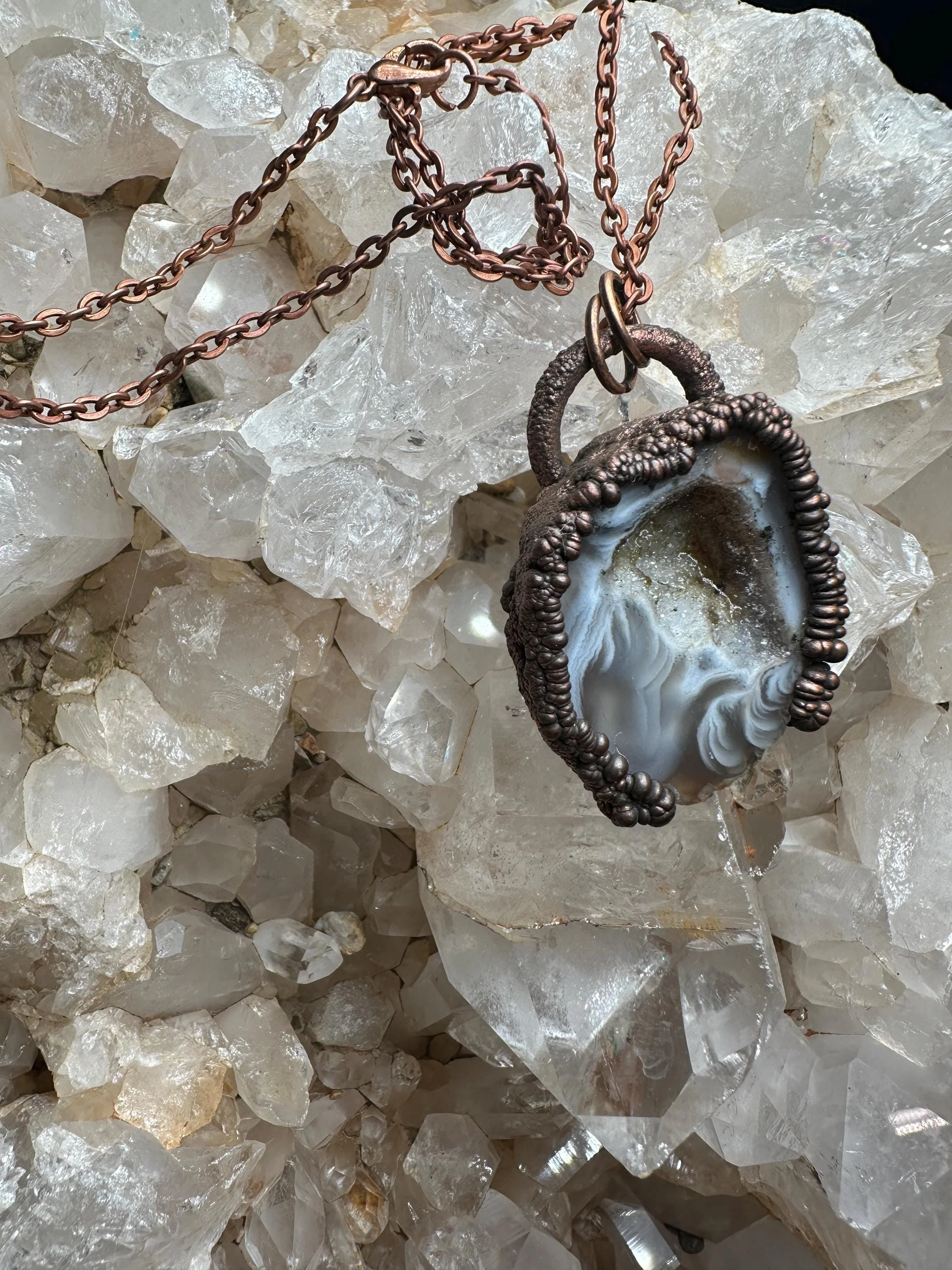 Simple but Sweet Categories: Select a Category Large pendants <2” Texas Crystals/ Rocks Simple but Sweet Runes/Sigils/Pagan Darker Theme Pieces Real Plants and Nature Forest Creations Ocean collection Small pendants >2” The Moon and Stars Simple but Sweet Amethyst Tower Pendant Necklace | Crystal Tower Necklace | Unique Jewelry | Electroformed Jewelry | Purple Jewelry Gift $50.00 Sold Out Sold Out Added! Oval Amethyst Sage Agate Pendant | Natural Stone Jewelry | Healing Crystal Necklace | Purple Necklace $65.00 Sold Out Sold Out Added! Malachite Azurite Triangle Pendant | Electroformed Copper Necklace | Blue Green Necklace | Unusual Jewelry $45.00 Add To Cart Added! Handmade Opalite Arrowhead Pendant: Copper Edged Gemstone Necklace $50.00 Add To Cart Added! Electroformed Copper Amethyst Tower Pendant Necklace - Purple Crystal Jewelry $50.00 Add To Cart Added! Larimar Square Pendant – Copper Electroformed with Ball Chain Border | Larimar Necklace | Blue Necklace | Western Gifts | Western Jewelry $60.00 Add To Cart Added! Spooky Season Ghost Pendant | Electroformed Ghost | Halloween Gift | Spooky Gift $23.00 Add To Cart Added! Rectangular Green Moss Agate Pendant | Terlingua Texas Stone in Copper | Green Moss Agate Necklace | Slim Copper Moss Agate Pendant $50.00 Add To Cart Added! Electroformed Copper Amethyst Tower Pendant Necklace - Purple Crystal Jewelry $50.00 Add To Cart Added! Black Agate Oval Pendant Necklace | Rustic Electroformed Copper Jewelry | Natural Stone Statement Necklace | Handmade Texas Agate Gift $60.00 Add To Cart Added! Electroformed Lepidolite & Serpentine Oval Pendant | Diagonal Split Gemstone | Handmade Necklace $65.00 Add To Cart Added! Electroformed Arkansas Quartz Pendant | Dainty Crystal Crown Necklace | Metaphysical Gift | Arkansas Quartz Jewelry | Crystal Jewelry $50.00 Add To Cart Added! Electroformed Geode Slice Pendant | Geode Gifts | Natural Crystal Jewelry $60.00 Geode 1 Geode 2 Geode 3 Add To Cart Added! Electroformed Geode Slice Pendant | Geode Gifts | Natural Crystal Jewelry $50.00 Geode 1 Geode 2 Geode 3 Add To Cart Added! Electroformed Geode Half Pendant | Geode Gifts | Natural Crystal Jewelry $60.00 Add To Cart Added!